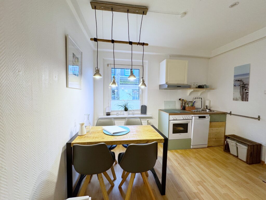 FeWo Wellenbrecher für bis zu 4 Personen, im Erdgeschoss gelegen, mit einem separaten Schlafzimmer und zwei Schlafmöglichkeiten im Wohnbereich.